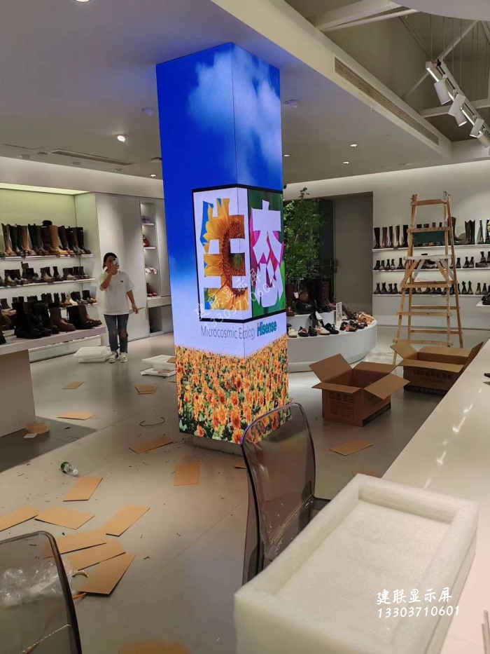 近日,在鄭州某商場,一款柱形LED顯示屏又稱柱子屏安裝完畢,采用室內(nèi)P2全彩LED顯示屏,面與面之間實現(xiàn)了無縫隙化連接!運用了E結(jié)構(gòu)工藝,通過與實際安裝現(xiàn)場環(huán)境相結(jié)合,打造出了創(chuàng)意led顯示屏新品,該屏造型獨特,擺脫了傳統(tǒng)平面顯示屏的感官,給人帶了全新視覺上的立體感!隨著科技的進(jìn)步和市場的需求,LED顯示屏已經(jīng)不再局限于傳統(tǒng)的平面形狀,越來越多的特殊形狀,如球形、曲面、柱狀形等都已經(jīng)成為可能.柱狀形LED顯示屏因其的視覺效果和功能性而得到了廣泛的應(yīng)用.