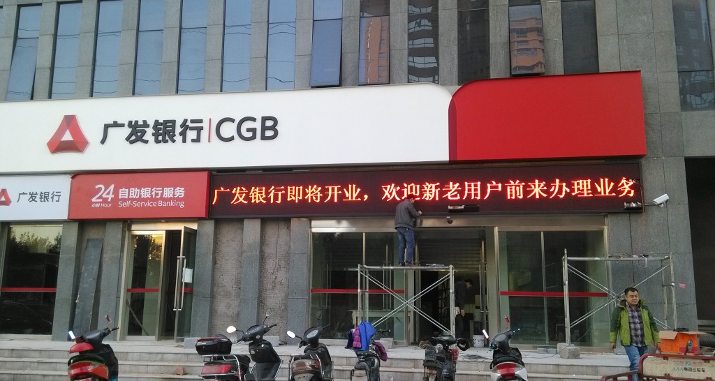 鄭州廣發(fā)銀行走字屏安裝現(xiàn)場