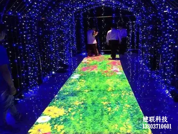 21世紀是智能的時代,自動扶梯、無人超市、智能指紋解鎖、無人駕駛,以及現(xiàn)在人手一部的智能手機,無一不在像我們召喚,智能化將會越來越普及以便利我們?nèi)粘I睢陌l(fā)展的角度而言,LED顯示屏行業(yè)的智能化也是大勢所趨。在互動領(lǐng)域,表現(xiàn)最為突出的要數(shù)LED地磚屏。什么是LED地磚屏?顧名思義,LED地磚屏是個性化的專門為地面設(shè)計的LED顯示屏。相較傳統(tǒng)的LED顯示屏,LED地磚屏在承重、防護性能、及散熱性能等方面做過特殊設(shè)計,使其能適應(yīng)高強度踩踏,長時間正常運行?;拥卮u屏是在LED地磚屏基礎(chǔ)之上,增加了感應(yīng)互動功能。比如借助紅外感應(yīng),可以跟蹤人的運動軌跡,能夠跟隨人體的活動呈現(xiàn)即時的畫面效果,從而可以實現(xiàn)諸如演員與觀眾走過,腳下出現(xiàn)水波紋、花朵開放等效果。